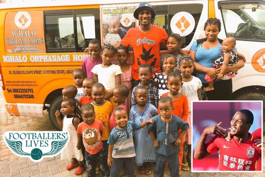 The logo of the orphanage has Ighalo sliding on his knees and raising his arms to the sky as he celebrates a goal, with the inscription ‘God is able'.